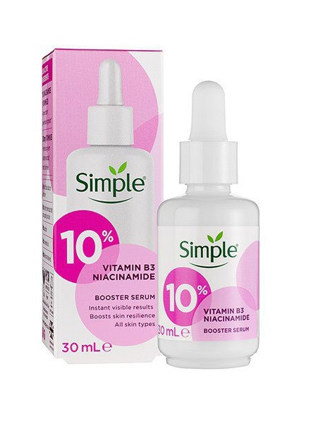 سرم ضد جوش نیاسینامید 10% و ویتامین B3 سیمپل یک محصول قدرتمند همه کاره است.این سرم بسیار عالی با هر نوع پوستی سازگار است. پس از استفاده از این محصول فورا نتیجه آنرا به چشم خواهید دید و میتوانید از این سرم سیمپل در روتین پوستی خود بهره مند شوید. 10% نیاسینامید (ویتامین B3) بسرعت پوست را هیدراته میکند.اصلی ترین تاثیر سرم نیاسینامید که چربی پوست را کنترل میکند و به استحکام پوست کمک می کند و به ساخت کراتین پوست می پردازد. کراتین استکراتین نوعی پروتئین است که پوست صورت را محکم تر و سالم تر نگه می دارد
